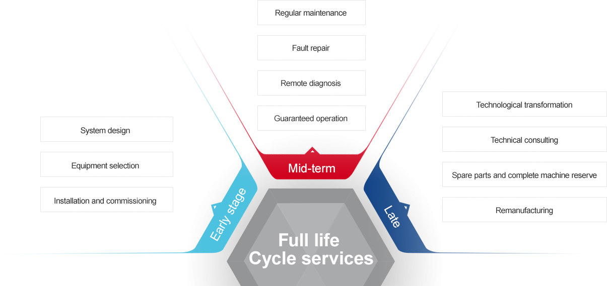 The service company has more than 200 service engineers, including more than 30 senior service engineers and more than 80 intermediate service engineers. There are more than 60 technicians in other fields such as machining, welding, electrical testing and other special jobs. There are more than 100 people stationed at 4S station.